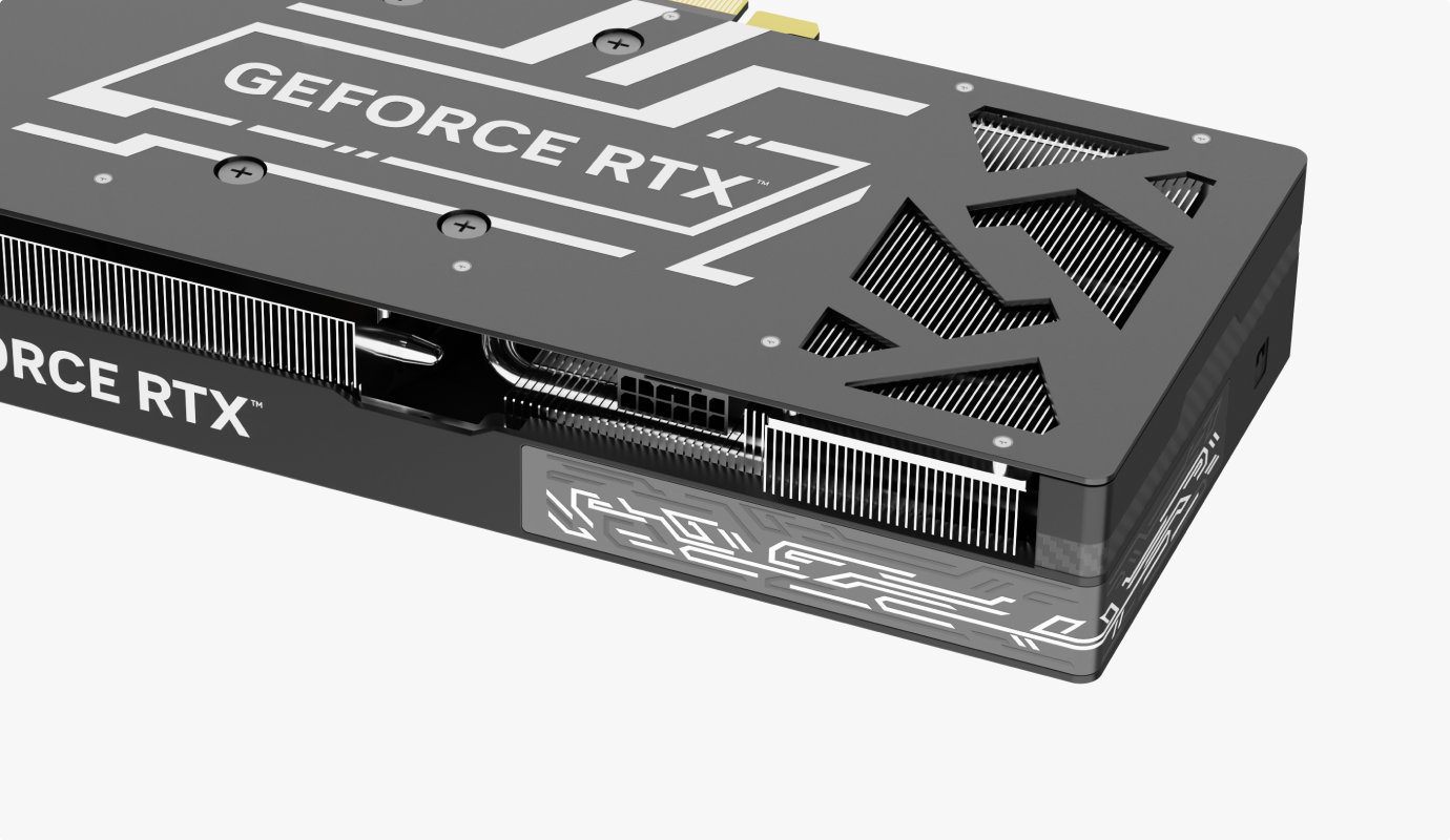 Завершающий штрих образа видеокарты — металлический бэкплейт с перфорацией, которая обеспечивает дополнительный воздухопоток и охлаждение элементов печатной платы.